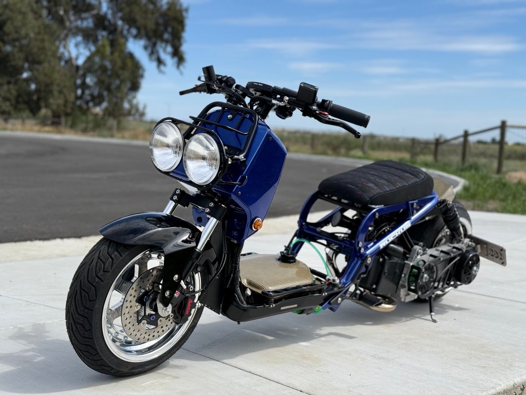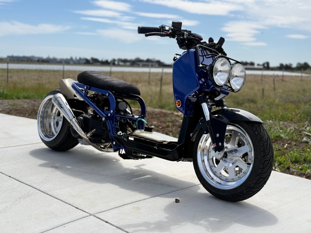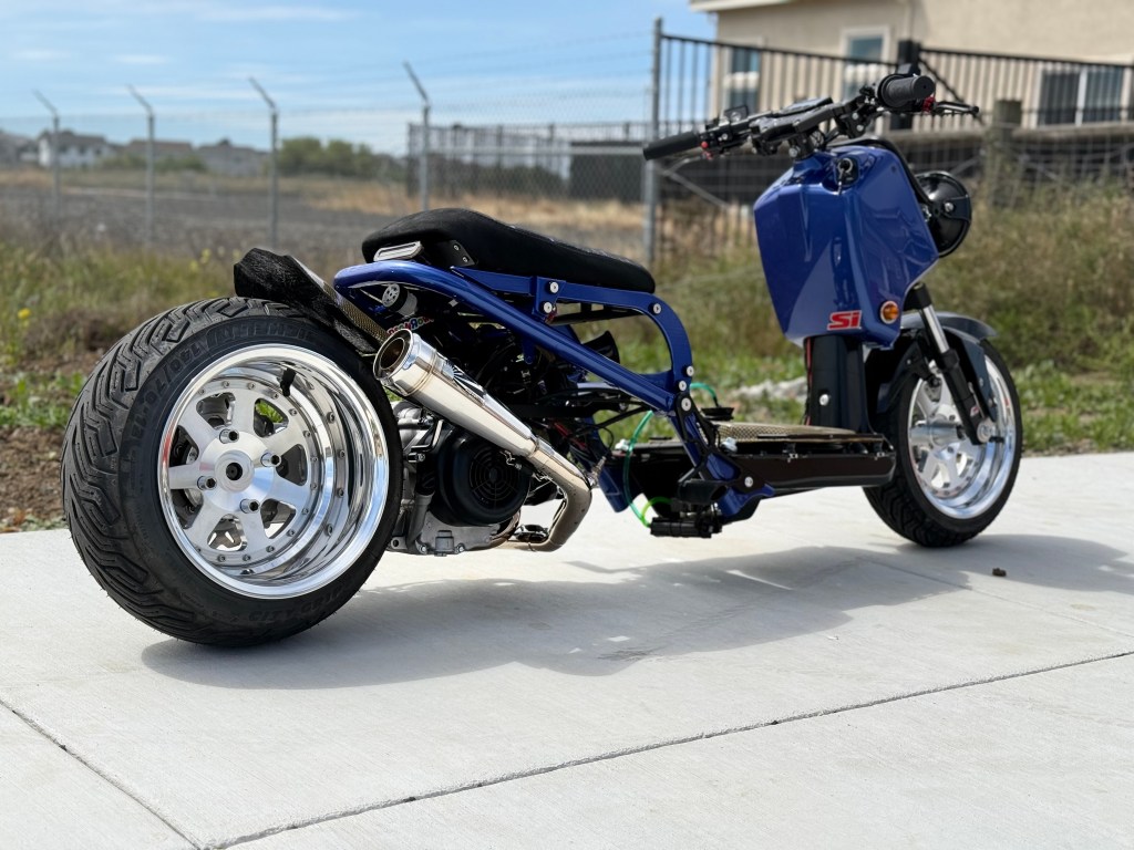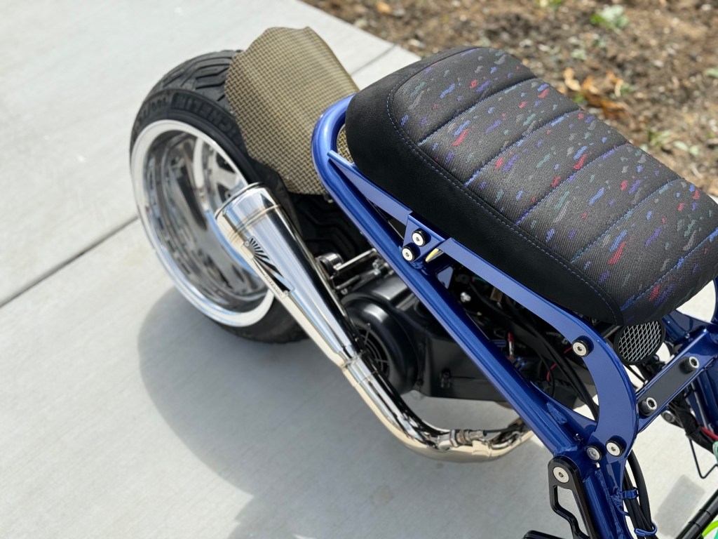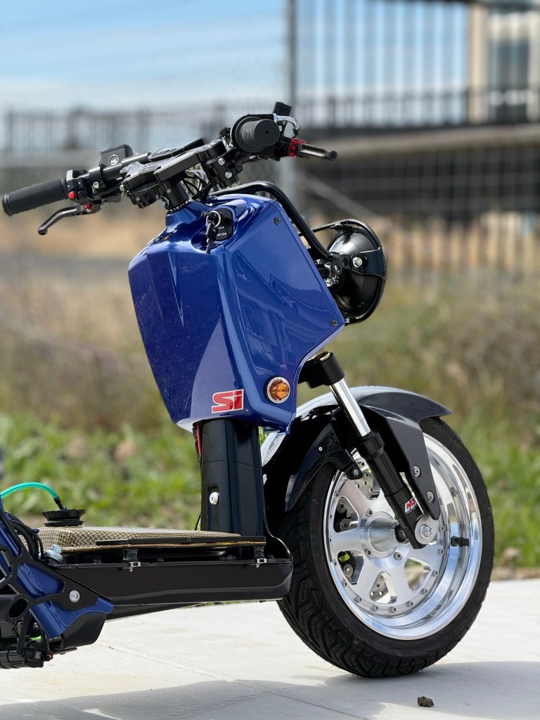 growing up in the 90’s we all had that one car. that one car that we loved. that one car that we poured all our adolescent money into. we did not get paid much, put just enough to make that one car, our own. eventually, most of us would grow out of it & move onto other cars. sometimes we would think about that one, we let go. how it made us feel driving it. we sometimes would try to find another but it was just not the same. only other way we can kind of relive that is to build something & put it’s spirit into it. the transformation started with its frame being powder coated matte black. the sub frame, seat bracket & battery box was then painted the classic electron blue pearl. we reimagined the EM1’s iconic Si wheels into a 2pc set. the powerplant was then installed with a 171cc big bore kit, paired with a fuel injection system. took off the rear drum brakes and replaced it with a rear disc kit to emulate the EM1’s disc brake setup. keeping the JDM vison alive, we added amber front turn signals. some carbon kevlar goodies to break apart the scheme & a polished exhaust from Japan. one of my favorite things we did for this build was the seat. sourced out a confetti material and paired it with some suede & we came out with something period correct with a twist. the Si badge tied it all up but we just have to give it a new meaning. the original Si meant, sport injected. let’s just call it scooter inspired.